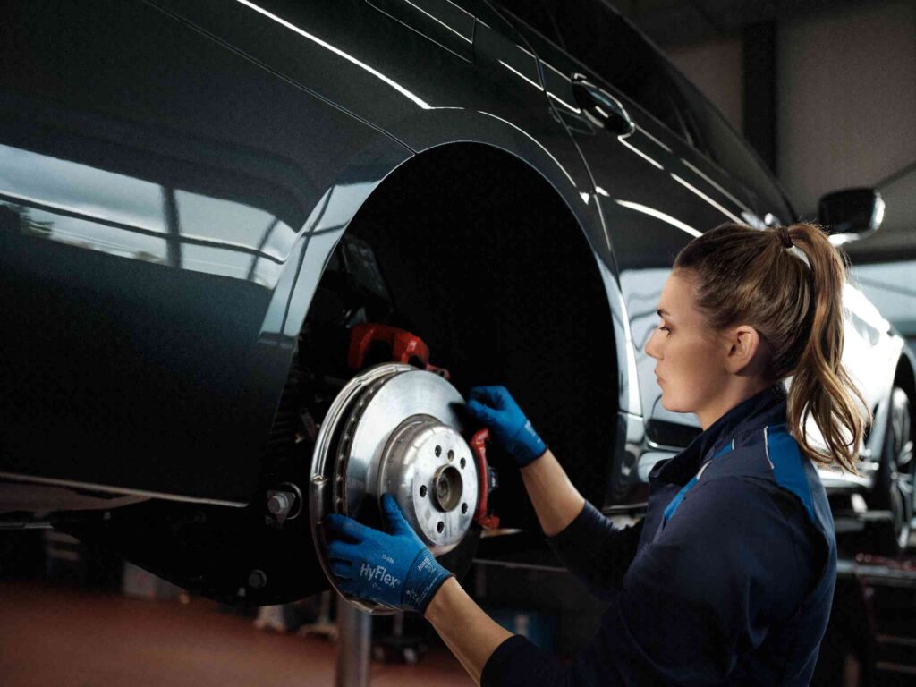 • Entfernung der Räder • Umfassende Inspektion des Bremssystems inklusive der Bremsschläuche • Nach Bedarf fachgerechter Austausch der verschlissenen Komponenten (Bremsscheiben, Bremsbeläge und Bremsbelagfühler) • Gründliche Reinigung der Bremsen • Montage der Räder und Kontrolle der Bremswirkung